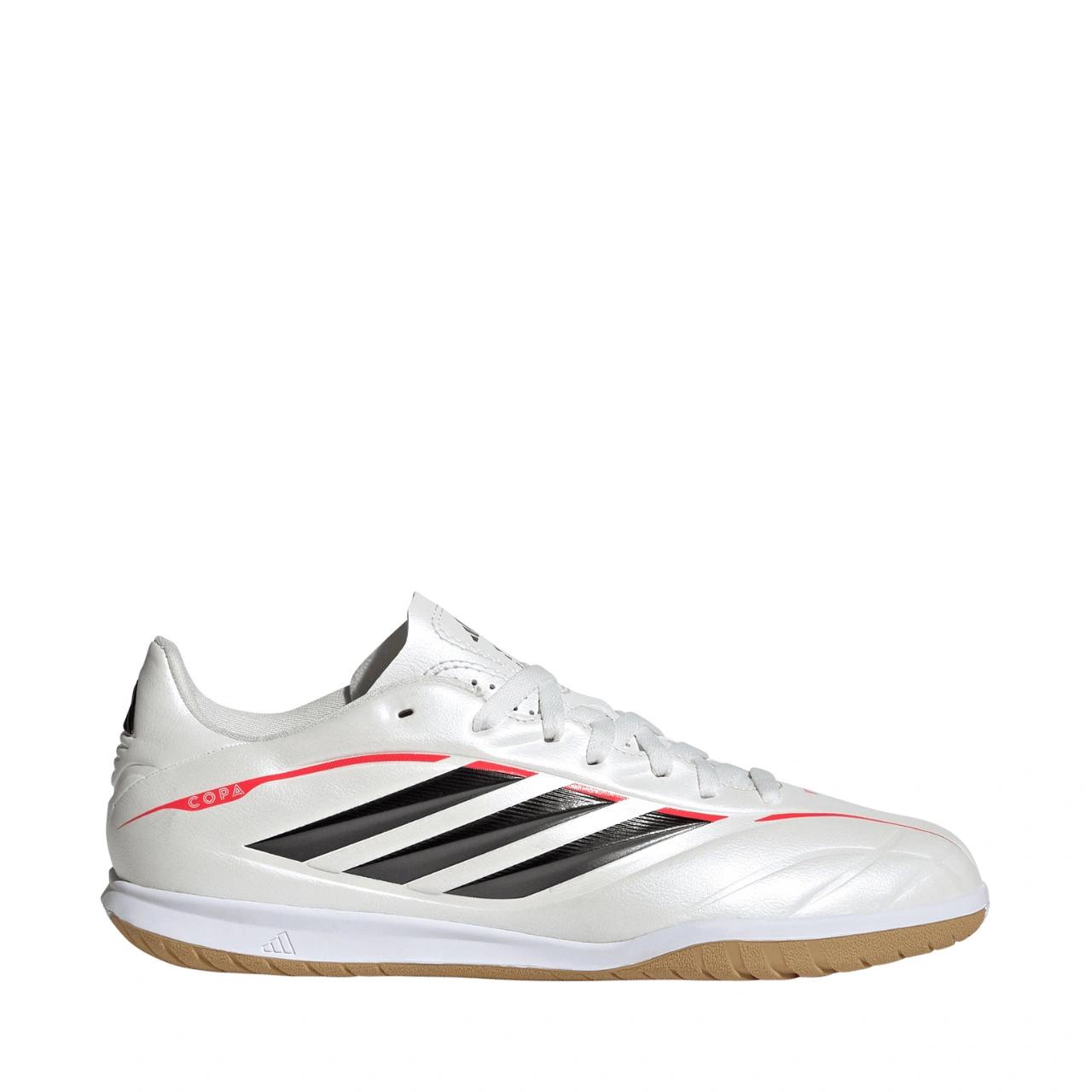 Amatorskie buty piłkarskie adidas przeznaczone są dla dzieci, które preferują rozgrywki na nawierzchniach wewnętrznych. Model z kolekcji Born For Goals Pack stworzono z myślą o młodych zawodnikach, którzy nie boją się podejmować ryzyka, dominują na hali i motywują drużynę do intensywniejszej walki o wygraną. Syntetyczna cholewka dopasowuje się do kształtu stopy, gwarantując komfort od momentu zasznurowania i pomagając uzyskać naturalny kontakt z piłką. Biegnąca od przedniej części stopy do pięty konstrukcja typu „pinline” inspirowana legendarnymi butami adiPure sprawia, że model wyróżnia się nie tylko stylem gry. Gumowa, niebrudząca podeszwa tworzy stabilną platformę gwarantującą wykonywanie dynamicznych ruchów na parkiecie. Niech Twój podopieczny błyszczy na polu gry niczym gwiazda w halówkach z linii Copa.